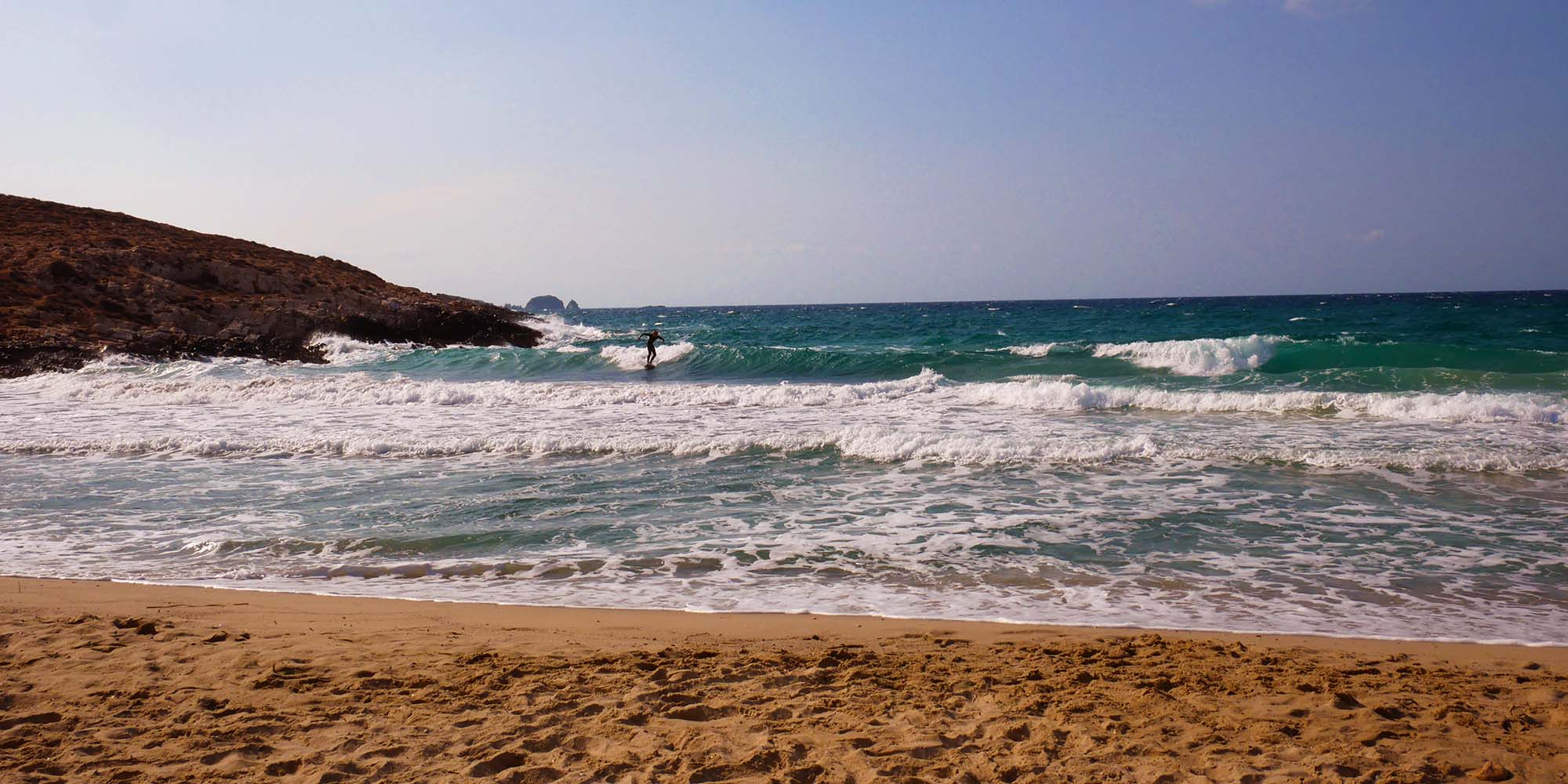 Though you have to get a bit lucky with the wind to go surfing, it is still possible on some spots around Paros and Antiparos to get some waves. Depending on the wind direction you will find some smaller waves. Parasporos beach in Paros often has some waves. Livadia Beach in Antiparos is a well known spot to the local and visiting surfers as North and Northwestern winds bring nice mushy waves.