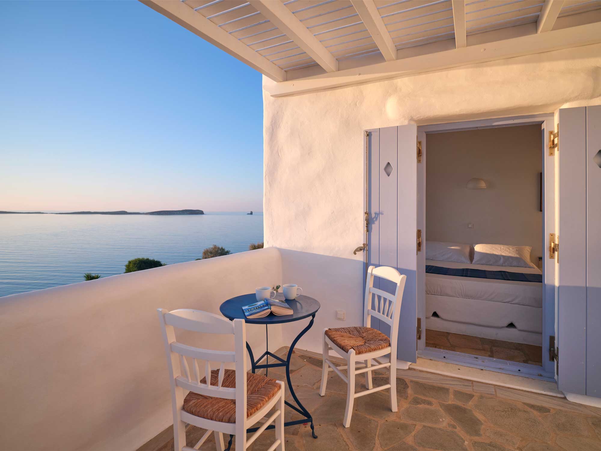 Celestina Villas are two wonderful villas of classic Cycladic architecture sited in an unbeatable seafront location in the lovely area of Agia Irini. Both villas follow a romantic and simple style, using natural materials like stone and wood to create an atmosphere of relaxation and tranquility, perfectly blending in with the natural surroundings.