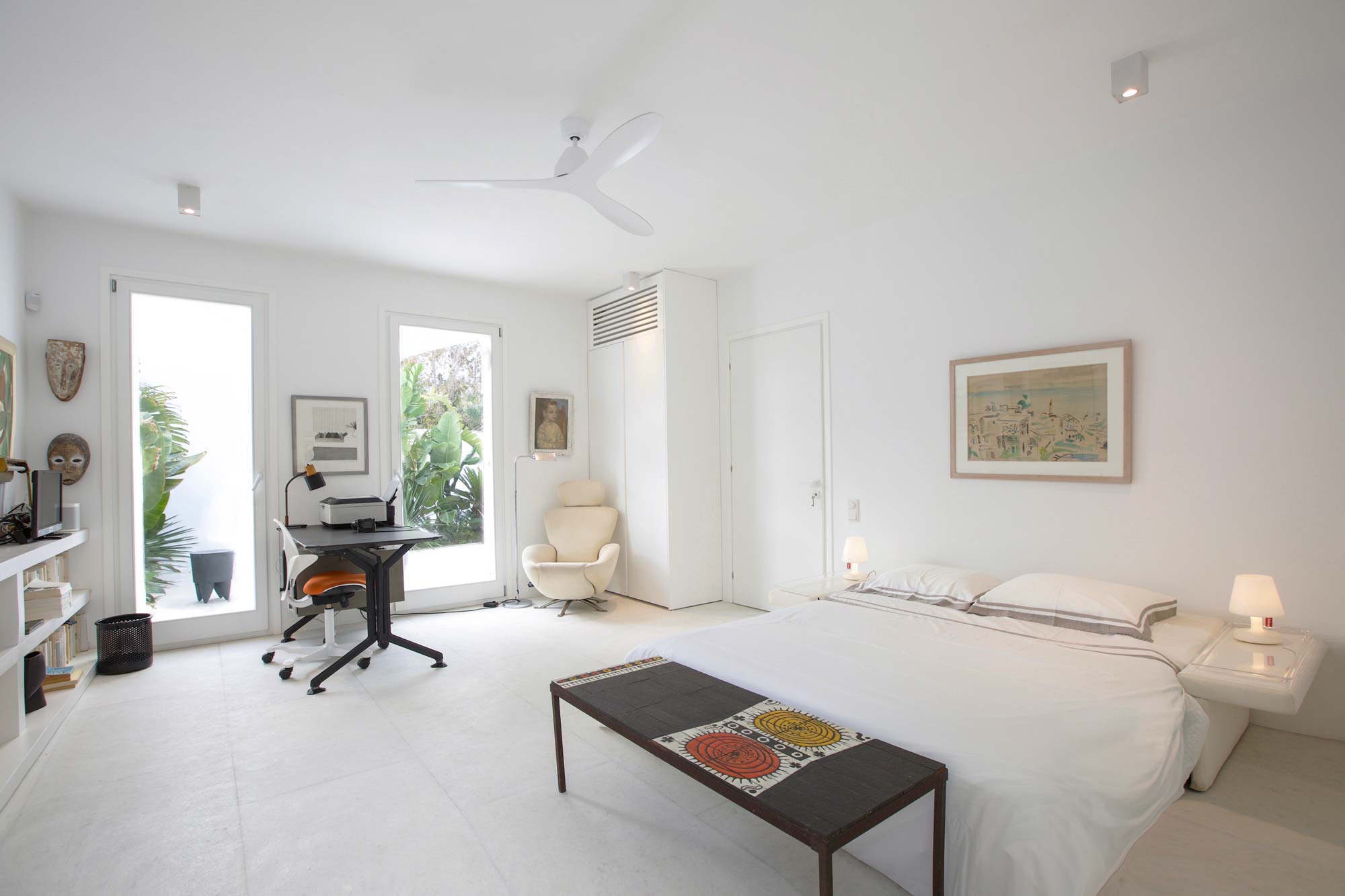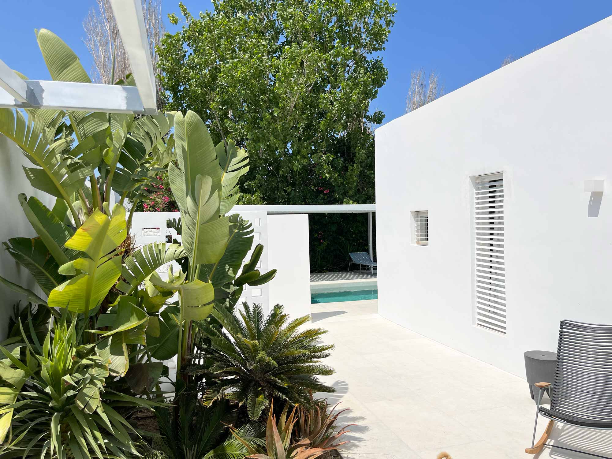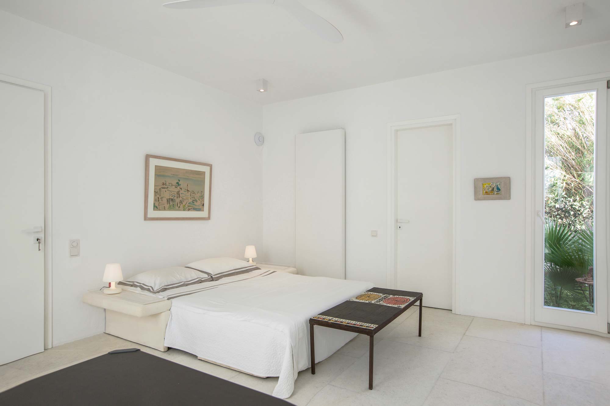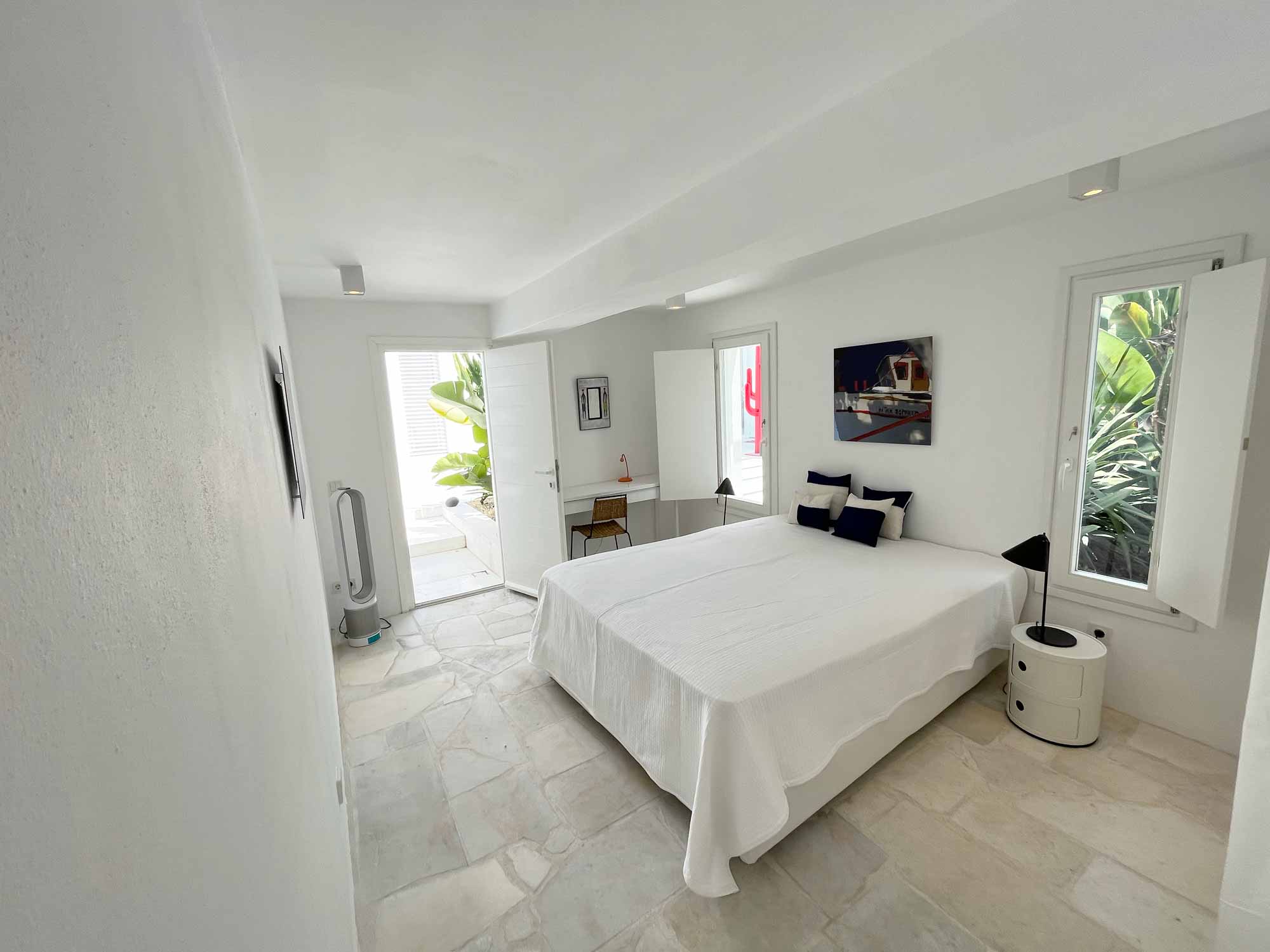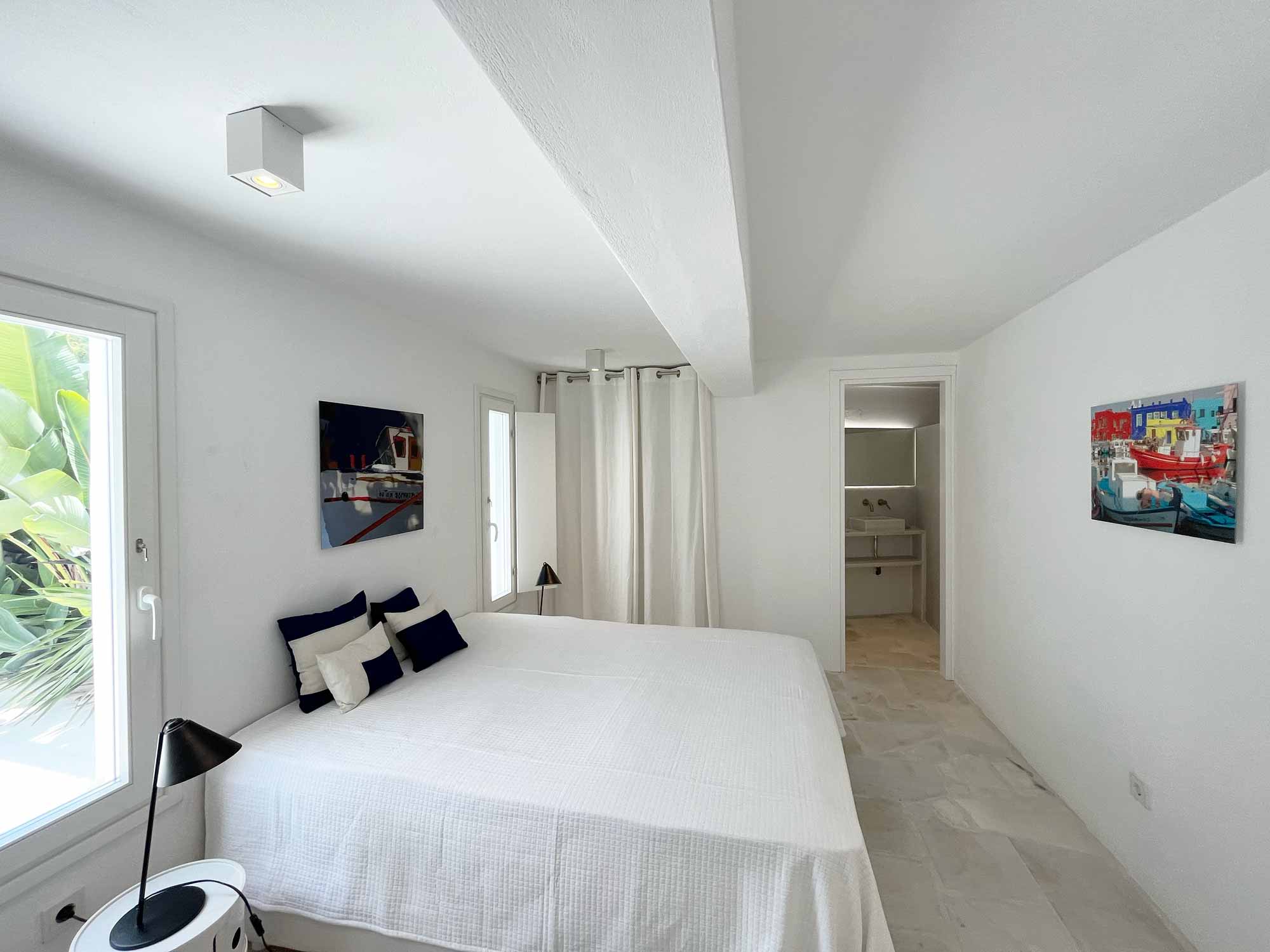 Elysian villa features three bedrooms with double beds, all with ensuite bathrooms. One of the bedrooms is discreetly situated in a separate guest house, further enhancing the sense of exclusivity and privacy.