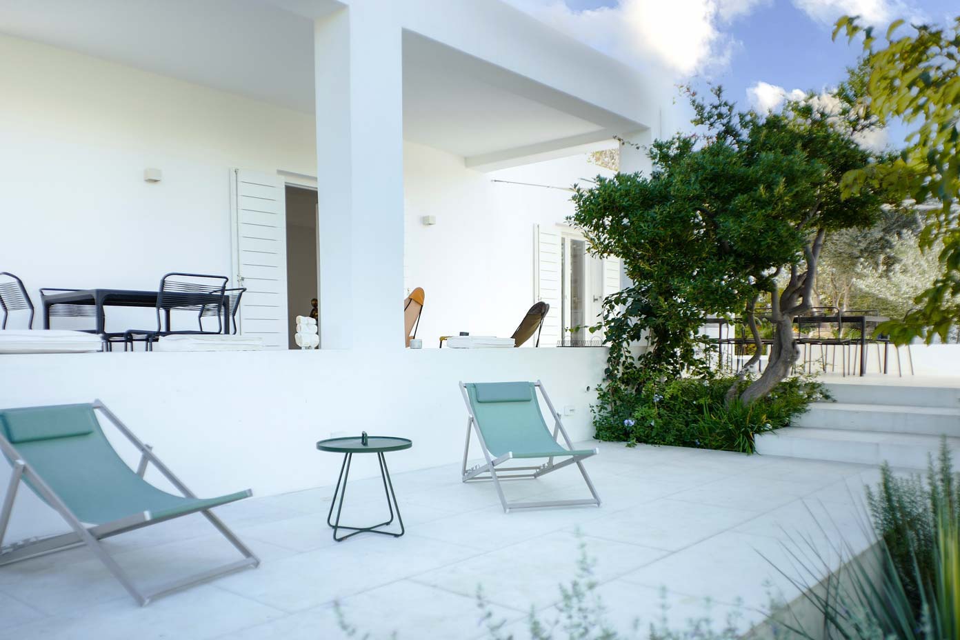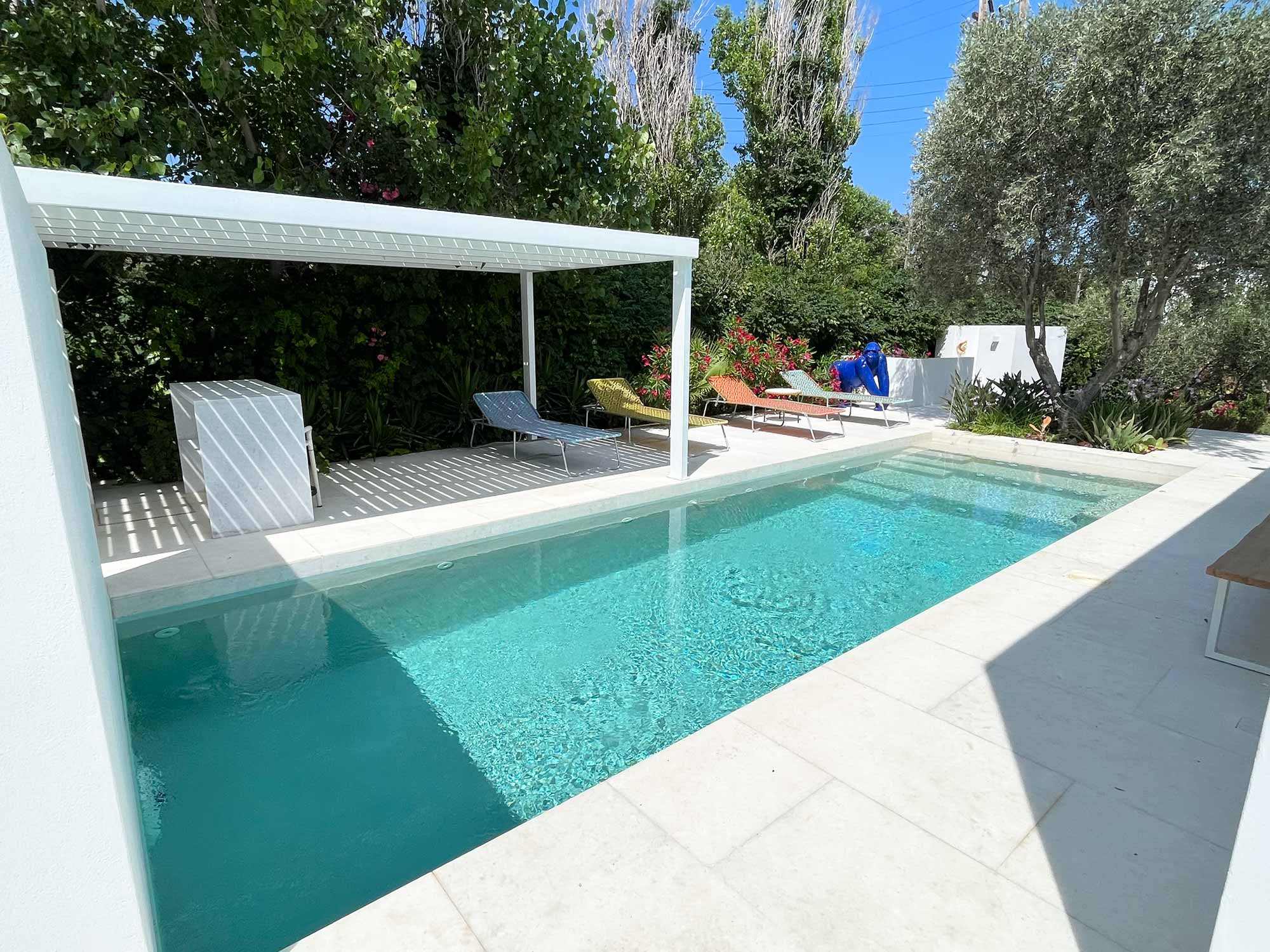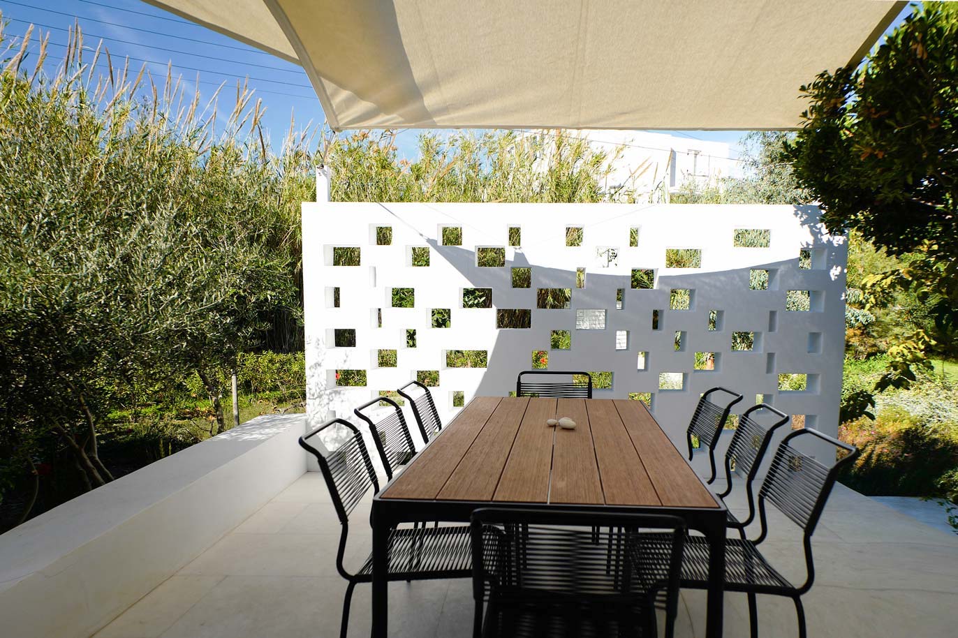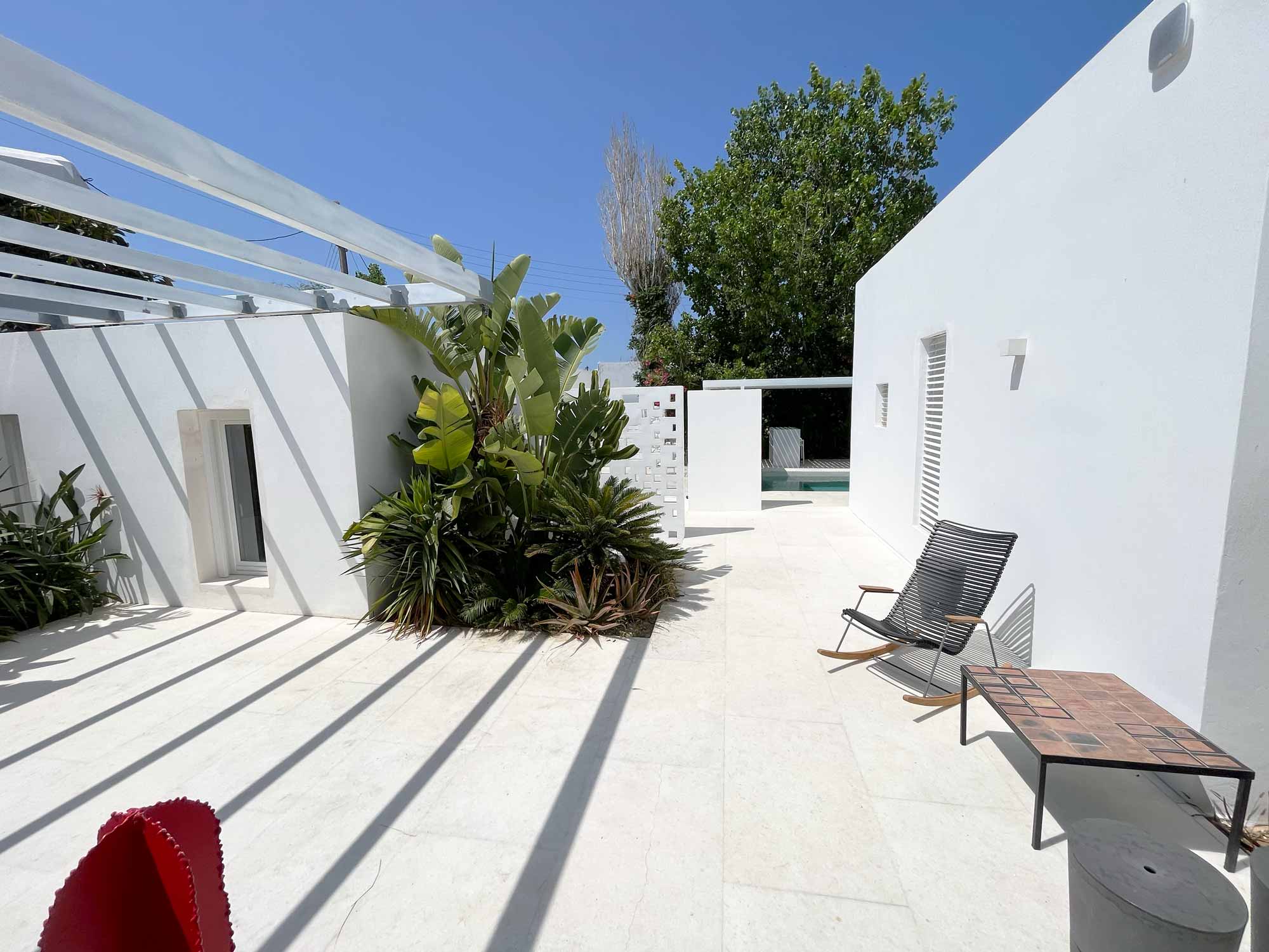 • Spacious terrace with pergola around the villa, seating area/lounge and dining table with chairs