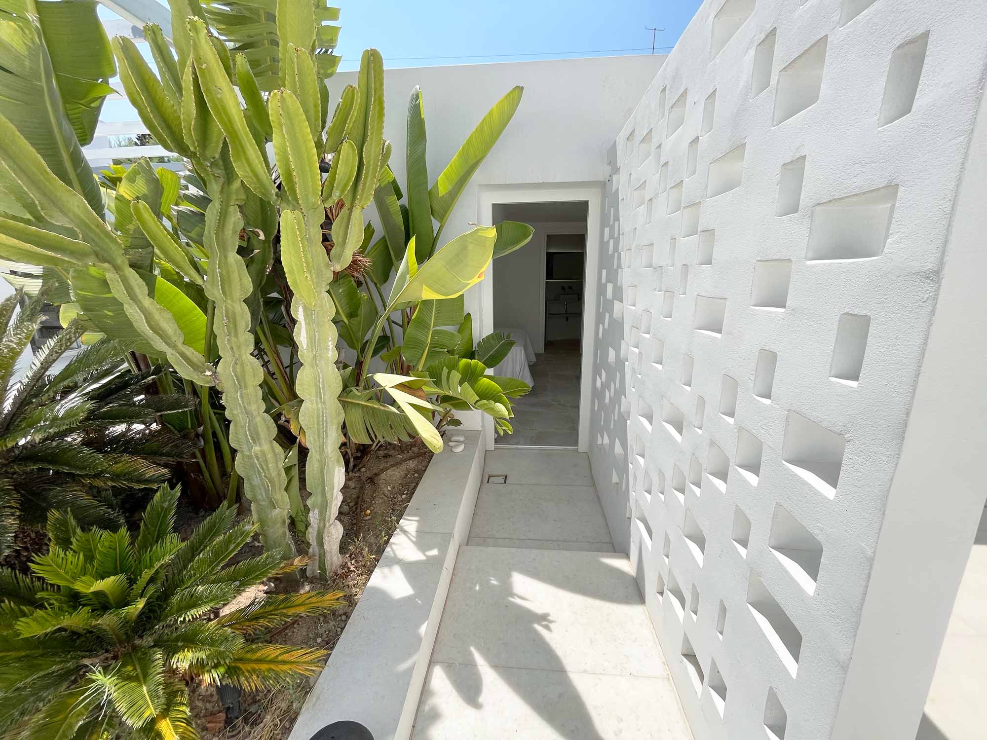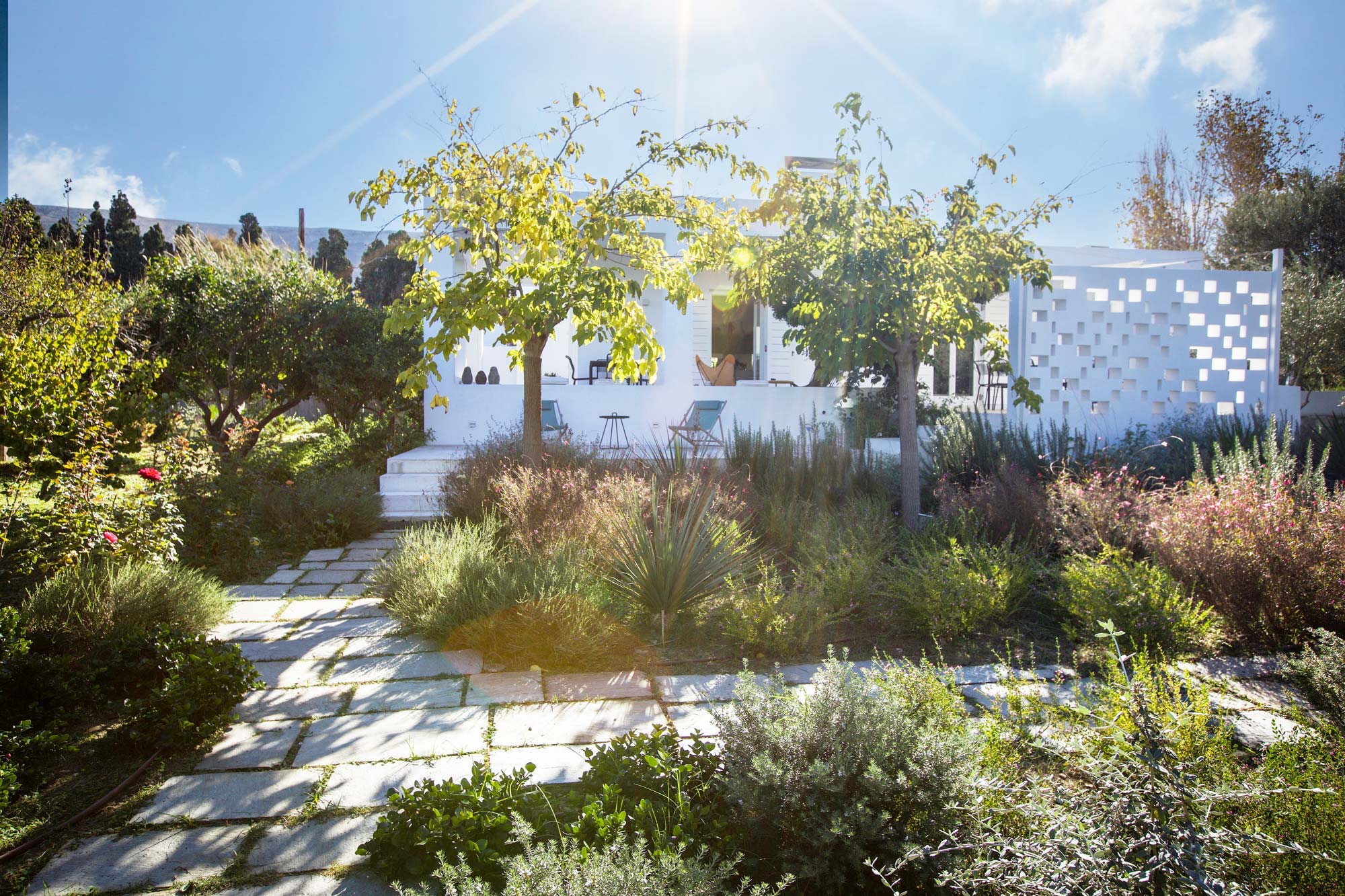 Every corner of Villa Elysian exudes an air of refinement, bestowing upon you an experience imbued with unparalleled class and elegance. Enveloped by an oasis of lush greenery, the villa is surrounded by a meticulously manicured garden that introduces you to the unique flora of Paros, enhanced with exotic tropical accents. Allow yourself to surrender to bliss as you recline on the terrace lounges, basking in the interplay of pure white against the vibrant hues of the verdant surroundings.