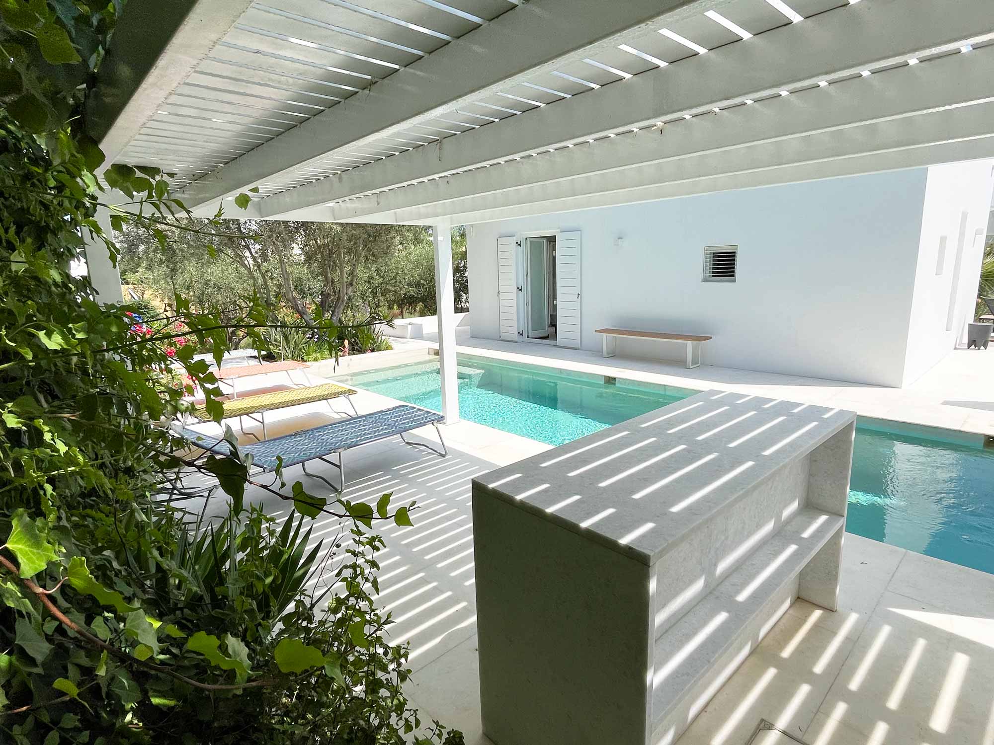 Discover an oasis of repose in the secluded haven of your private pool area, thoughtfully designed to cocoon you in privacy and imbue your leisure moments with an added touch of sophistication. Immerse yourself in the refreshing waters, basking in the warm embrace of the Parian sun, while the wonderful garden provides a verdant sanctuary. Completing this exquisite tableau is an outdoor kitchenette and a petite bar nestled by the pool’s edge, ensuring your every desire is effortlessly catered to.