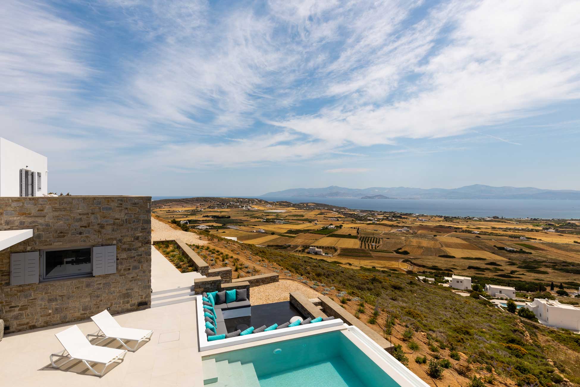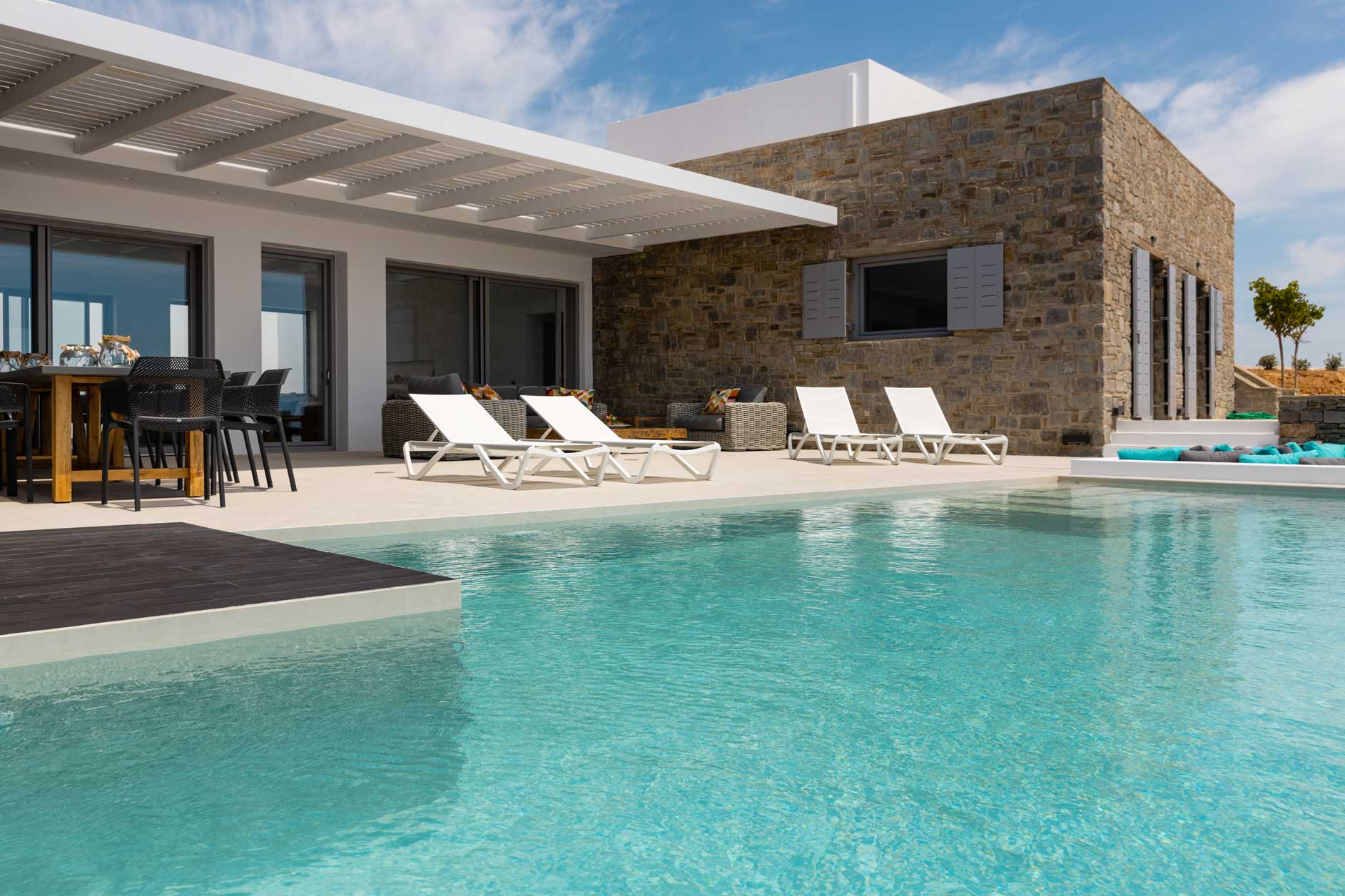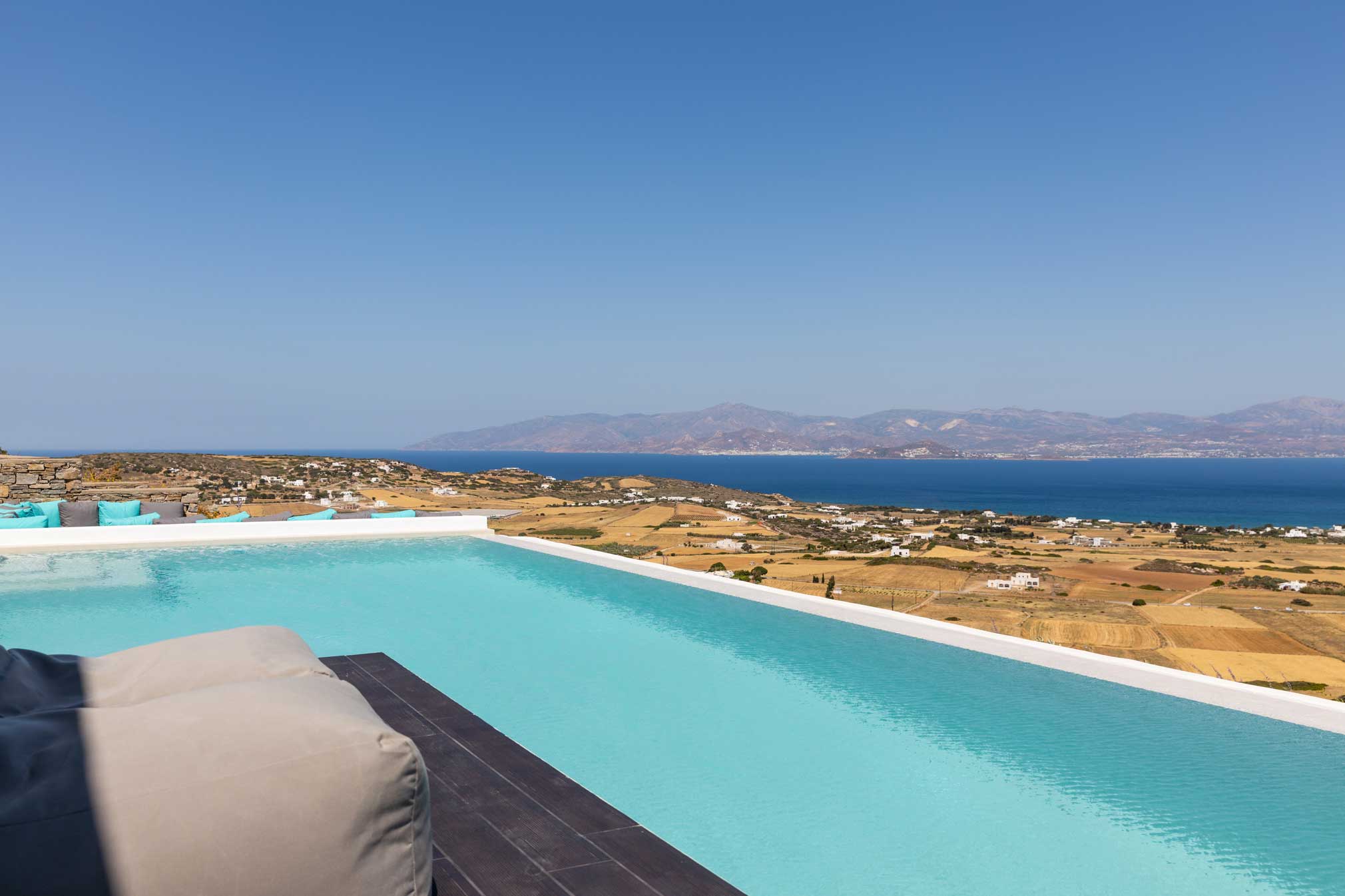 This villa stands out for its luxurious and modern style, both indoors and at the wonderful outdoor pool area. Once you step foot on this villa, the feelings of airiness and openness will dominate you, while taking in the magnificent views of the Parian coast and the surrounding scenic landscape.