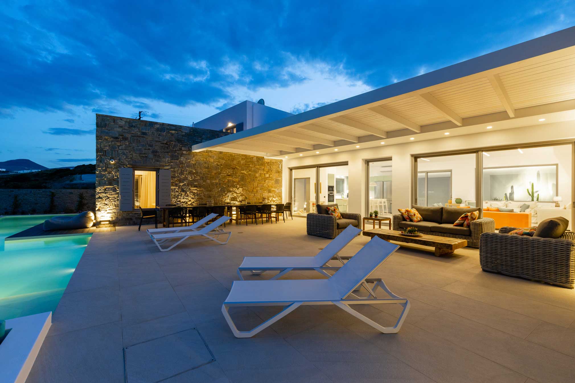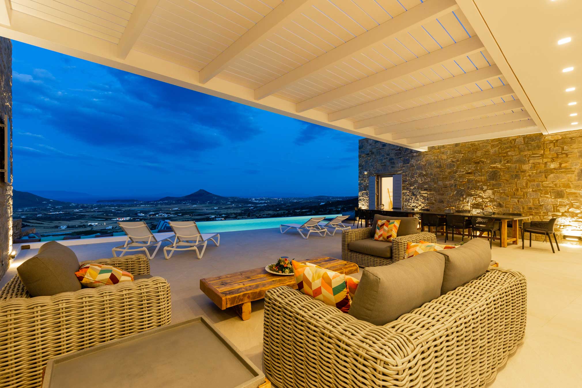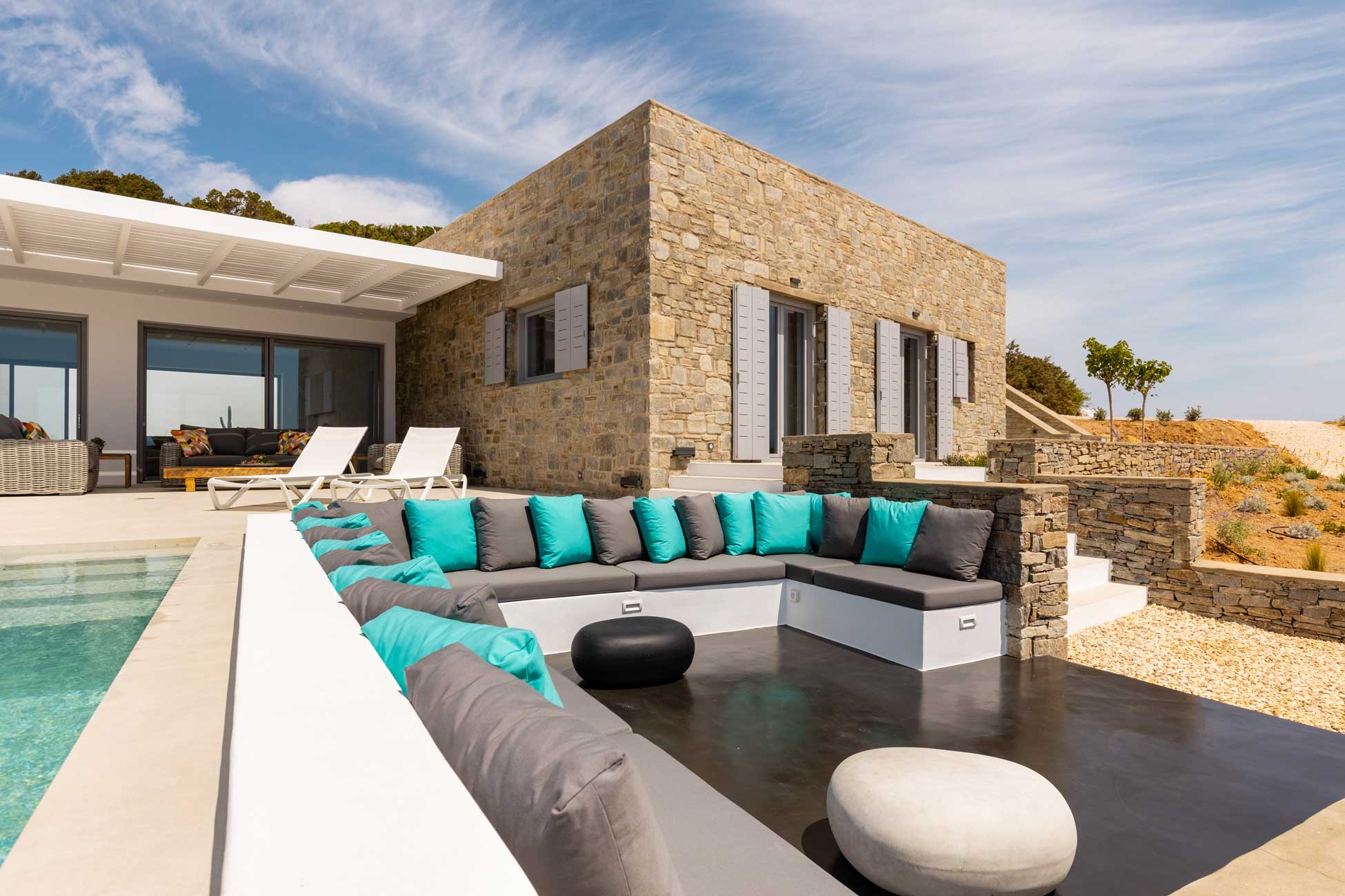This villa stands out for its luxurious and modern style, both indoors and at the wonderful outdoor pool area. Once you step foot on this villa, the feelings of airiness and openness will dominate you, while taking in the magnificent views of the Parian coast and the surrounding scenic landscape.