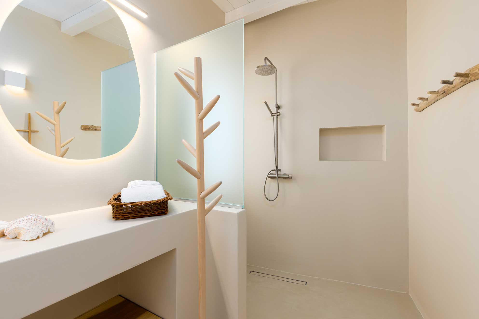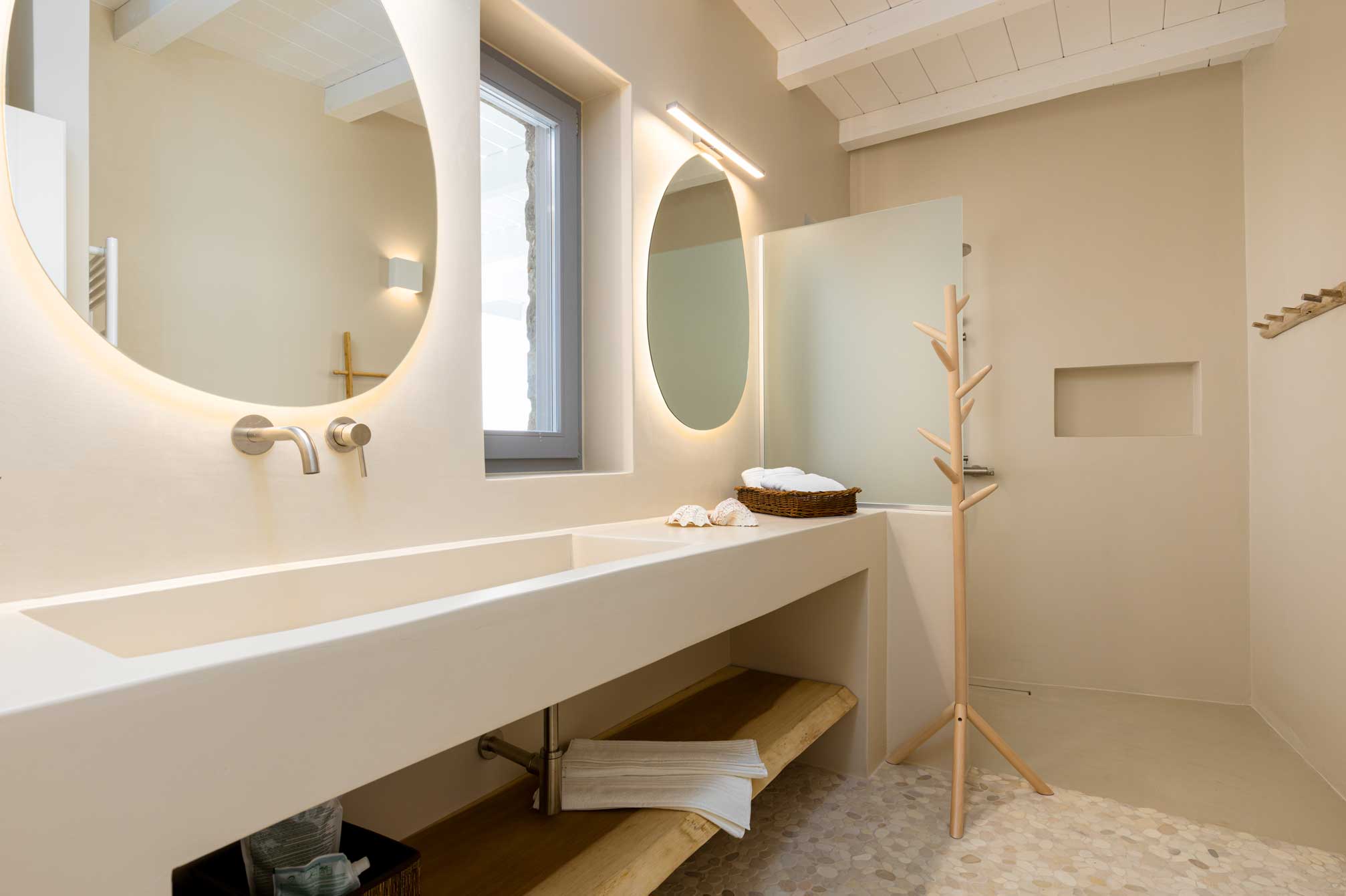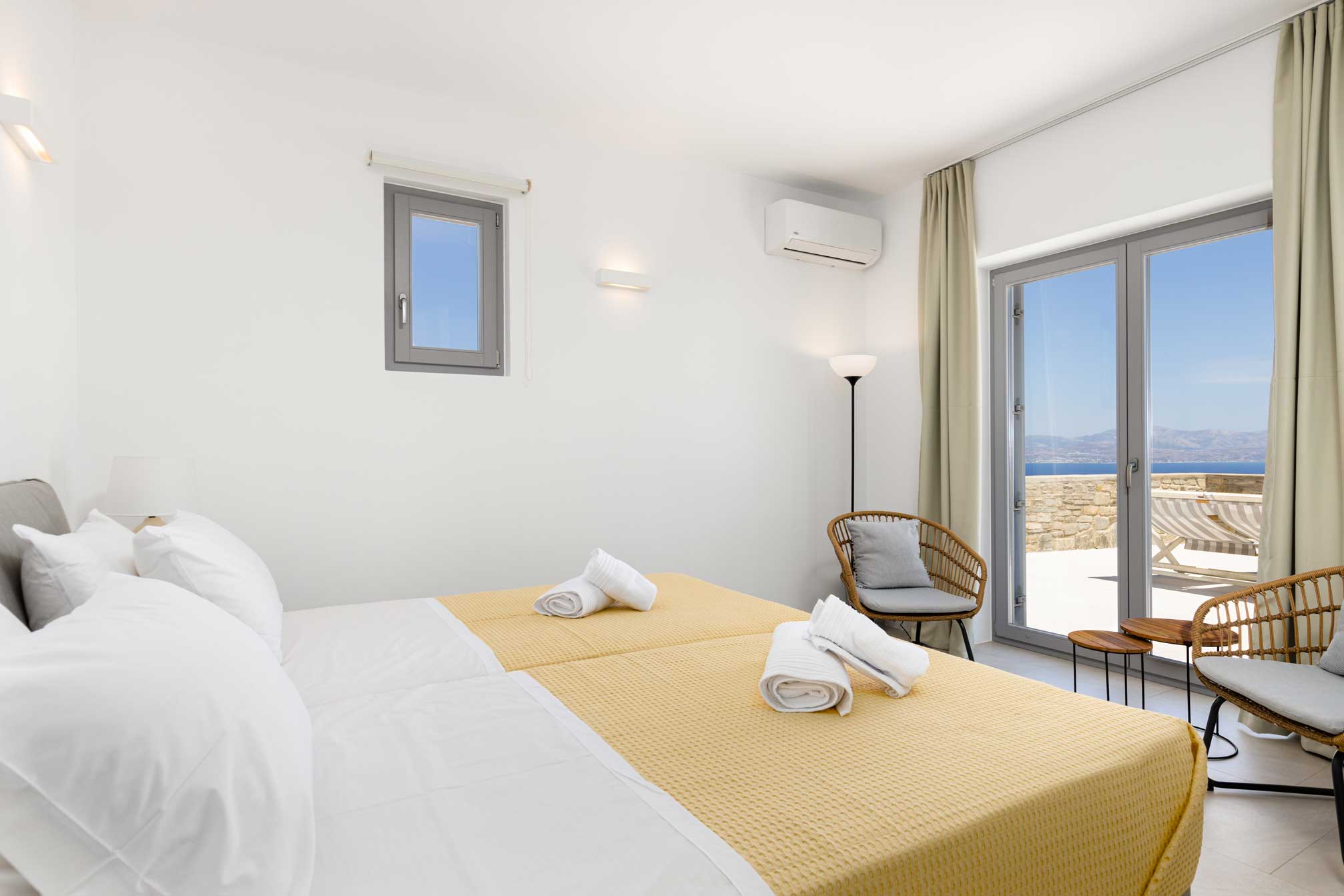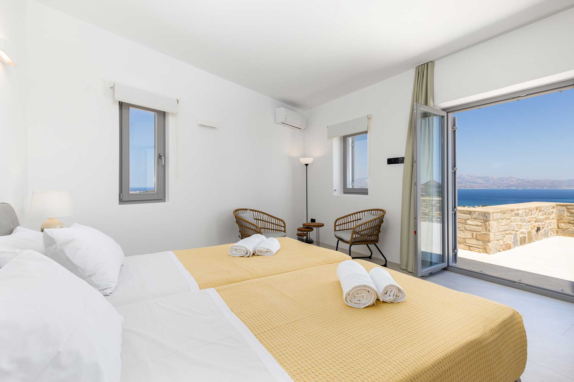 On the inside, all five bedrooms of the villa come with en-suite bathrooms with a unique design, air-conditioning and a sea view with private terraces, adding privacy, comfort and class to your leisure. The dominant colors are bright and natural, to offer a heart-warming sense.