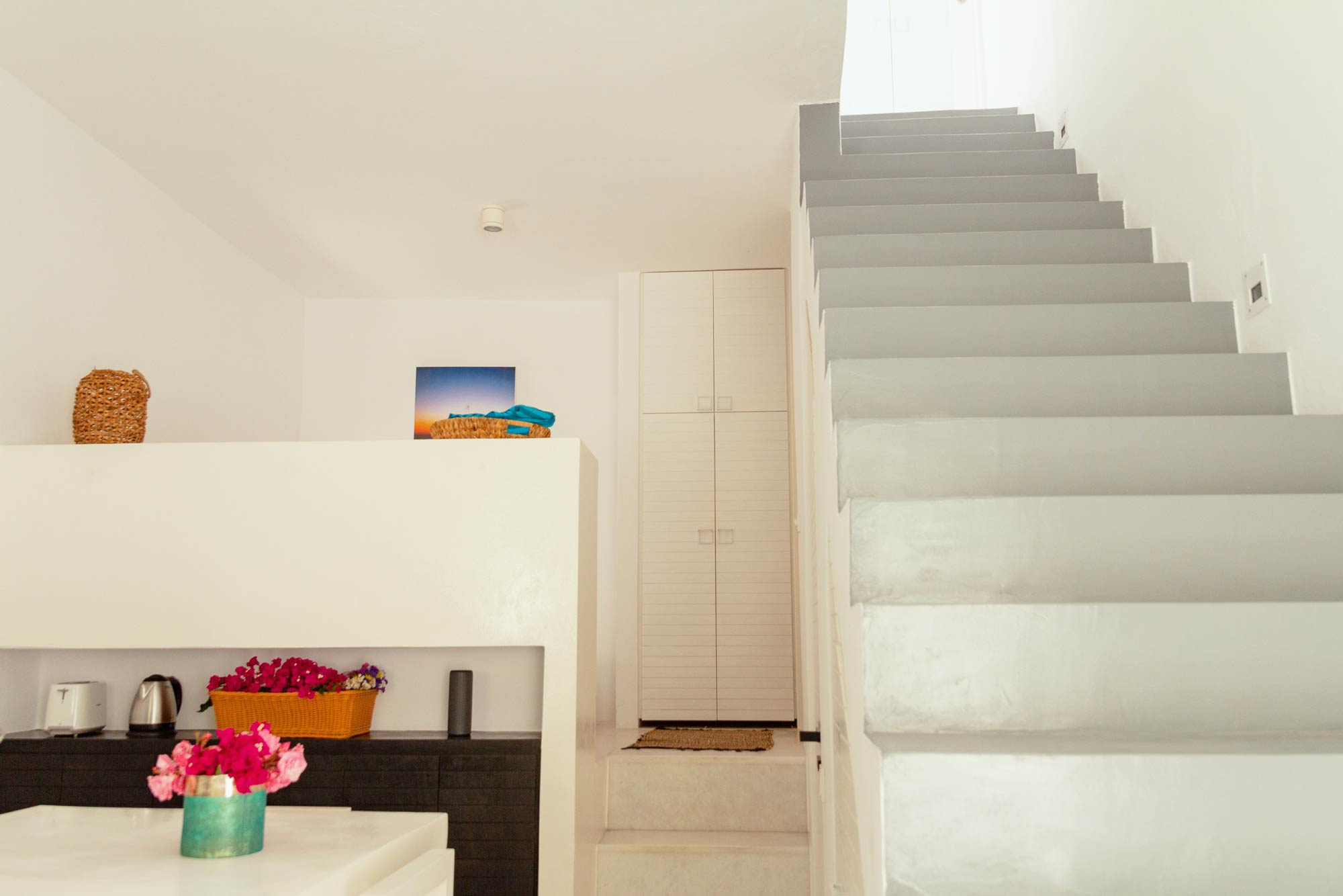 Relaya is a cosy little Cycladic authentic and modern house, providing a living area of 30 square meters with a private roof top of 25 square meters.
